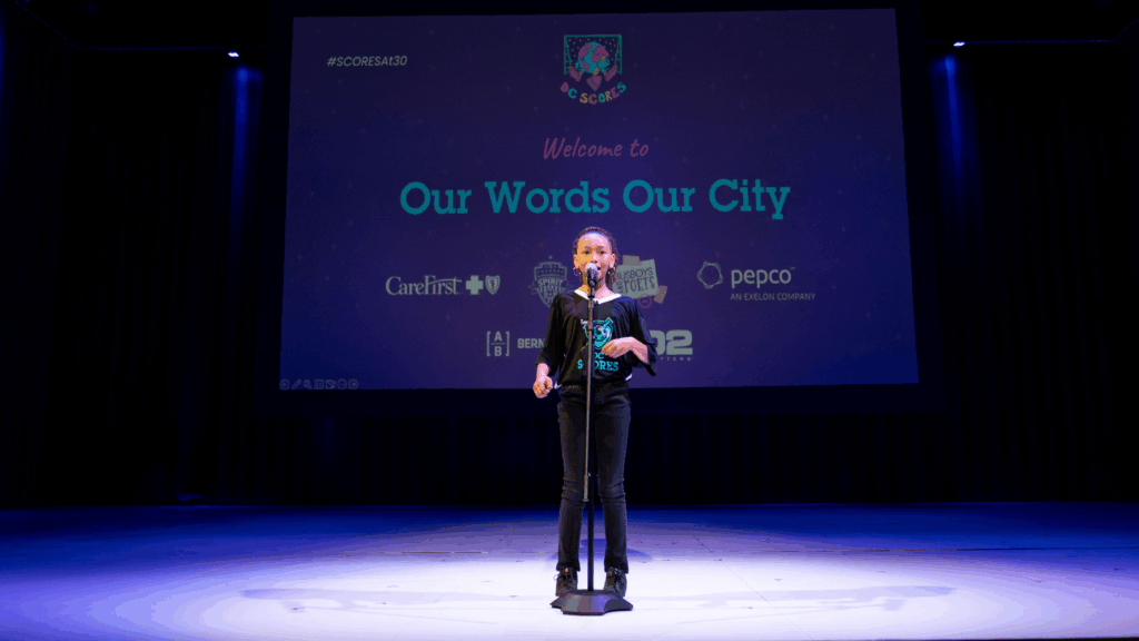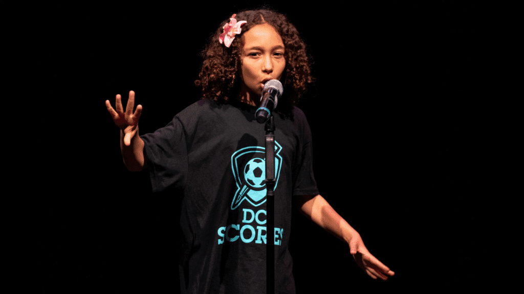 Yet, as she progressed through the poetry curriculum with her coaches and DC SCORES poetry specialists, she began to fall in love with spoken word.