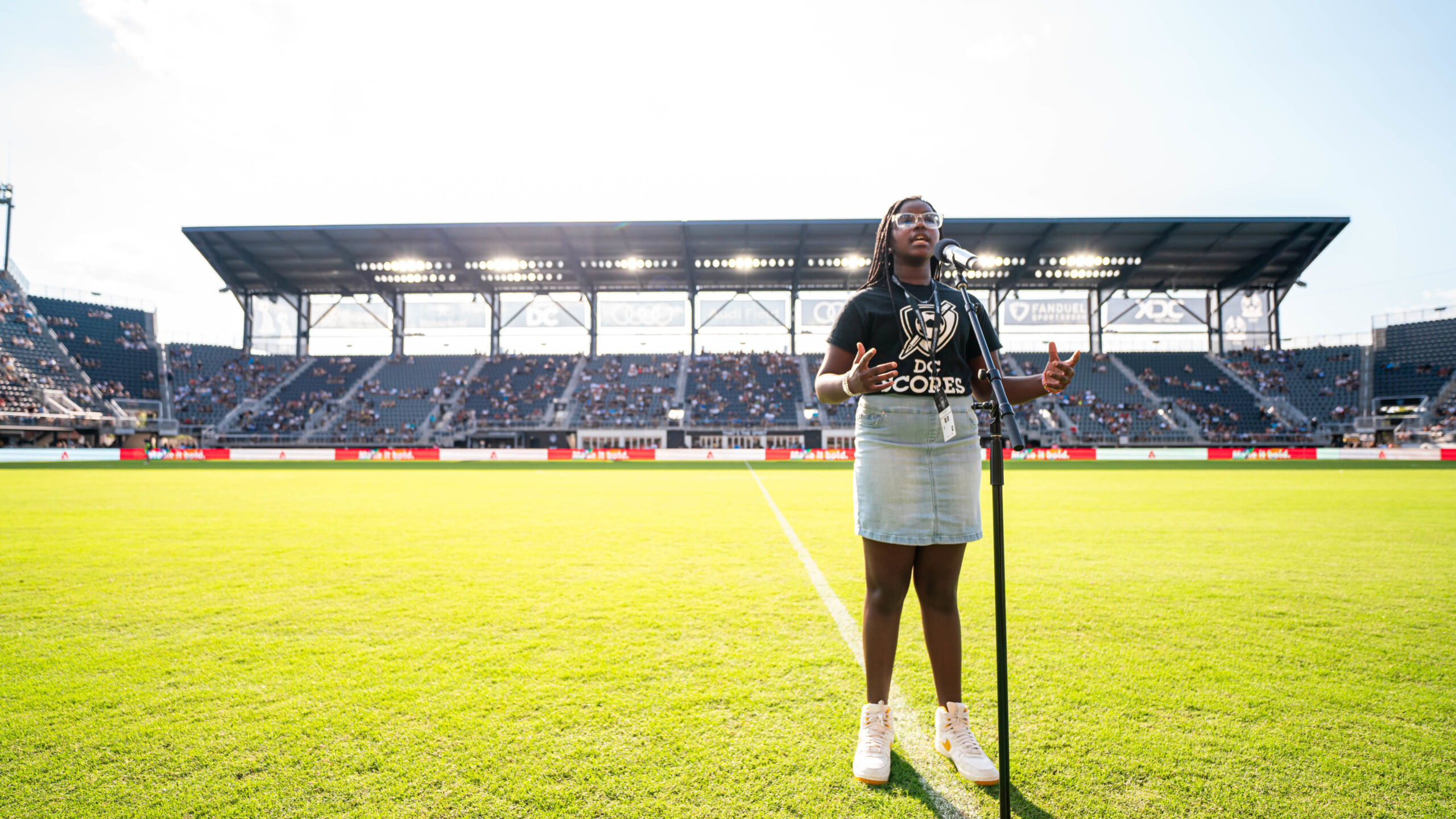 Kayla performs at Audi Field during the Washington Spirit against Chicago Red Stars in 2023. (Breanna Biorato/Washington Spirit)